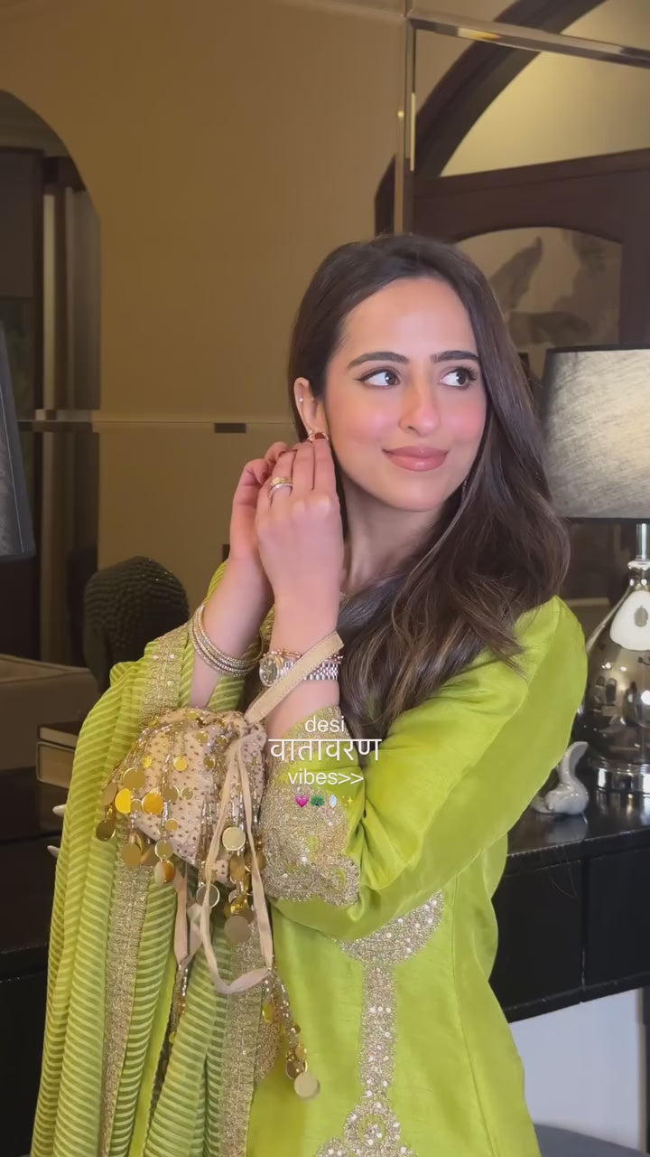 Introducing our exquisite Zainaa Kurta Set, a manifestation of elegance, style, and cultural richness that transcends boundaries. The short kurta with flared pants are adorned with intricate golden zari and sequin embroidery, paired with soft minimal striped dupatta with embellished border.